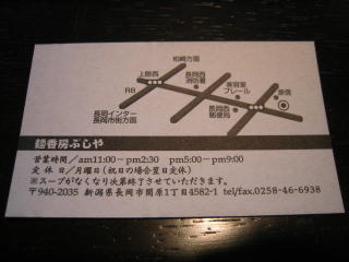 お店でいただいた名刺です。