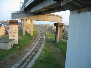 ドンキの交差点を左折し、しばらく走ると新幹線や在来線の高架橋を渡ります。