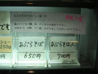 玄関左手に券売機、生姜醤油に加え、「あぶらそば」があります。