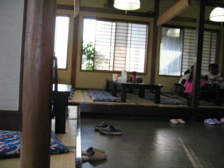 左手から奥、右奥にかけてL字型の小上がり席、8人は座れそうです。