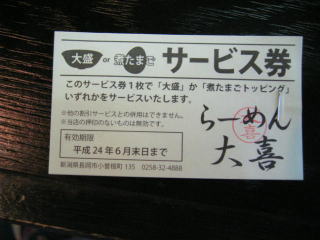 平成24年5月13日(日) 長岡市の「らーめん大喜」さんにお邪魔しました。