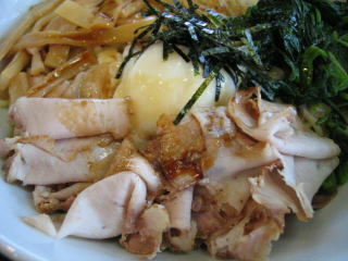 ロースハムの様なチャーシュー、温泉玉子の様な卵、メンマ、キザミのり、ほうれん草などが入っています。