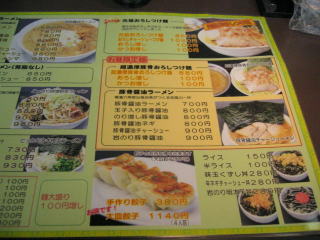背脂味噌ラーメン、背脂梅塩、元祖おろしつけ麺などたくさんのメニューがあります。
