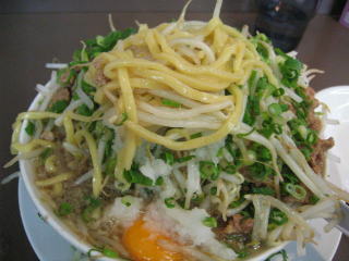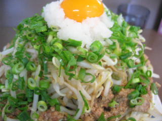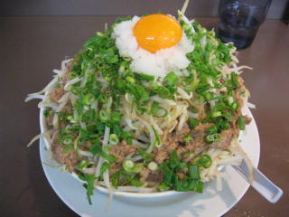 へそ?の卵黄、おろし、ネギ、モヤシ、挽肉とものすごいボリュームです。