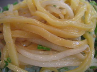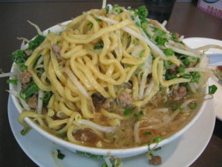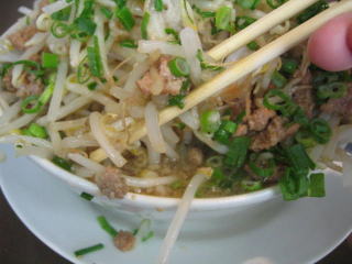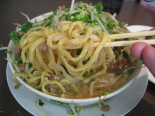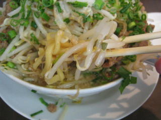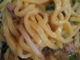 モヤシを食べ進みます、やっと麺が出てきました。