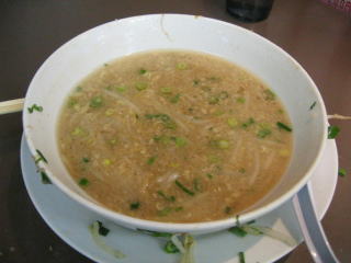 一生懸命食べます、麺とモヤシはほぼ完食ですがスープはここまでで満腹です。