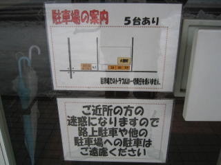 駐車場はお店の前に縦列駐車で5台ほどです。