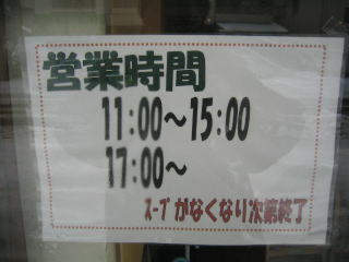 営業時間は11:00〜15:00、17:00からスープがなくなり次第終了。