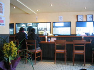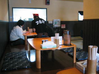 店内入って右側にカウンター席と厨房、左側に小上り4名席が4席。