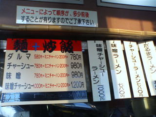 悩んで「麺+炒飯」だるま580円+ミニチャーハン200円=780円にしました。
