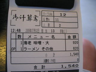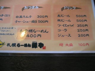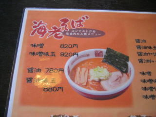 メニュー左上の「海老そば味噌820」円とその「麺大盛100円」を頼みました。