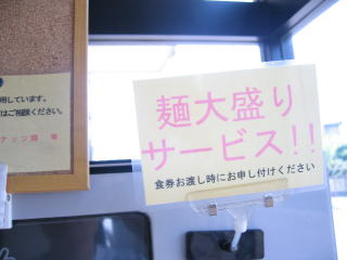 「麺大盛りサービス!!」食券を渡す時に頼む様です。