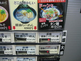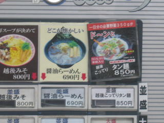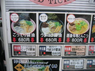 「こってり醤油」680円の大盛無料と「とんこつ白湯スープ」580円大盛無料にします。