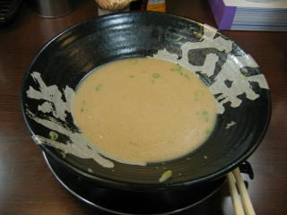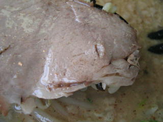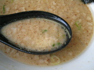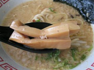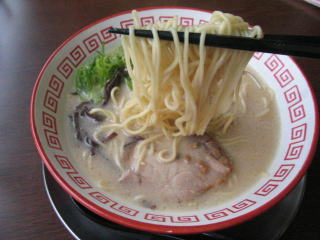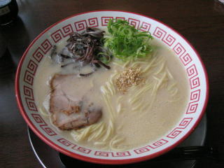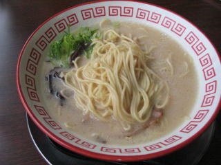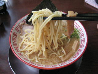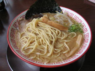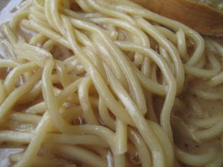 背脂の浮いた白湯スープに中太麺、美味しくいただけます。