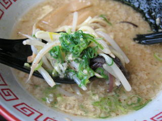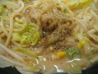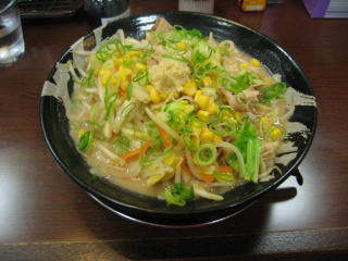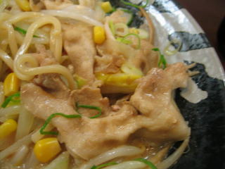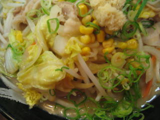 モヤシ、コーン、ネギ、豚肉など具沢山です。