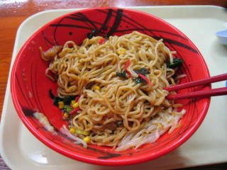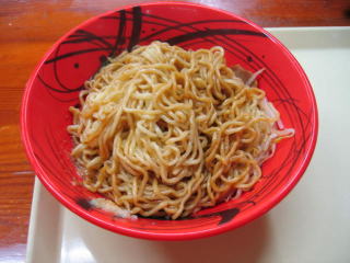 番号1番で呼ばれ、ドンブリを自分でトレーに移し、お箸をとります。