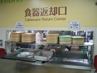 食器を返却口へ持っていきます、返却口はセットメニューコナーの奥にあります。