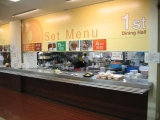 その先の左側の建物、ドアを開けて進むと左手に第一食堂を見つけました。