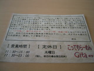 平成16年8月 上越市のこってりらーめんGitaにお邪魔しました。