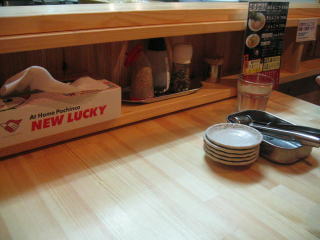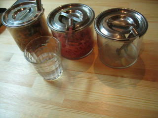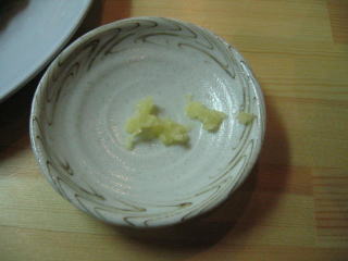 テーブルには、生ニンニク、紅ショウガ、辛モヤシです。