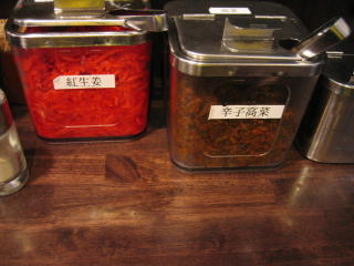 「紅生姜」、「辛子高菜」、「鷹の爪」、「おろしニンニク」、「きざみ生姜」だったように思います。