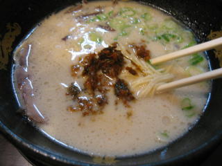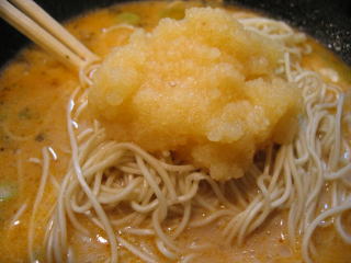 今度は「紅生姜」と「おろしニンニク」、今日はもう誰とも会わないのでたっぷりの「おろしニンニク」を入れました。