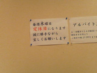 営業時間は確認しませんでしたが、木曜日が定休日です。