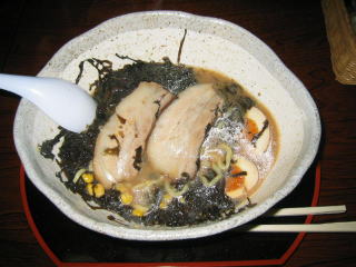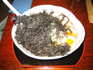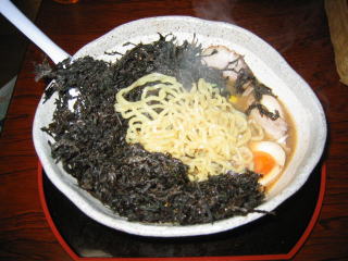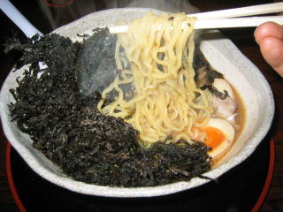 多量の岩のりがラーメンを覆いつくし、中はプリプリの中太縮れ麺です。