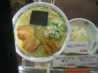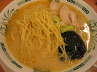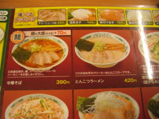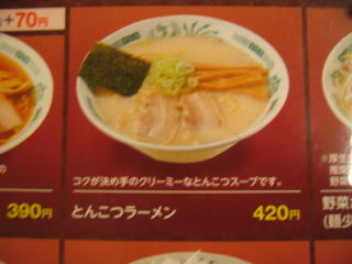 つい今ほど「丸亀製麺」さんで「ぶっかけうどん」並盛290円をいただいたばかりなので「とんこつラーメン」420円にします。