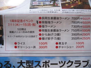 フリーぺーパーに「1周年記念イベント」の案内が載っていました。