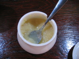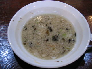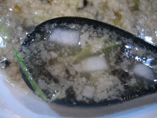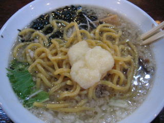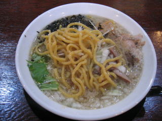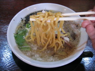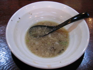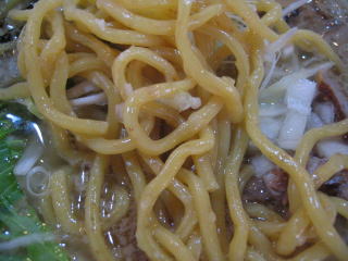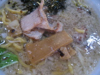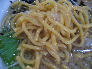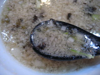 背脂が入った、甘じょっぱい感じの濃いスープです。