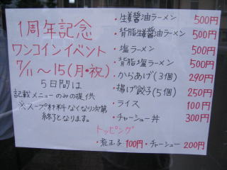 今日は「背脂塩」500円にします、5日間はこれらのメニューのみで営業しています。