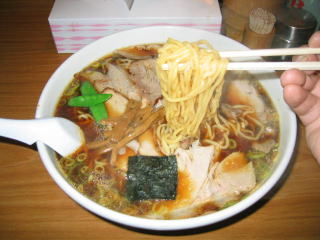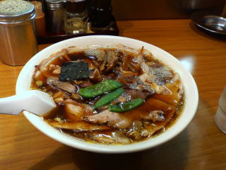 スープは濃口のしょう油でわずかに生姜の香り、切り落としのチャーシューがたくさん入っています。