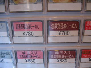 「濃厚鶏醤油らーめん」780円の麺大盛100円と「超濃厚鶏白湯らーめん」780です。