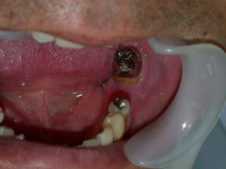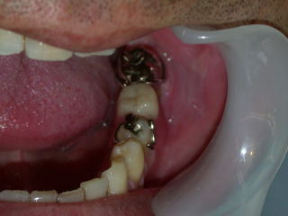 奥の左下7番目の銀歯が多少動くのでブリッジの土台としては不適当と判断し、