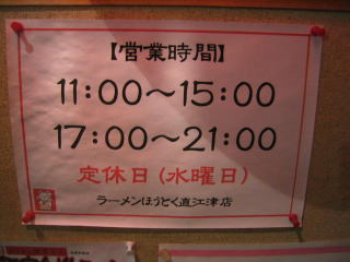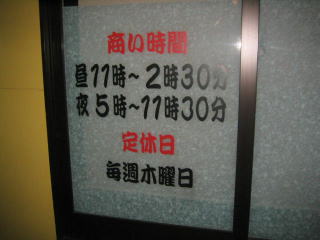 玄関室内の掲示、営業時間と定休日の案内です。