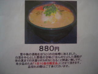 やはり「酒粕ラーメン」が気になります。