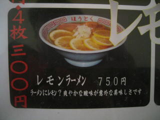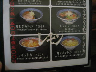 なんと「レモンラーメン」!750円もあります。