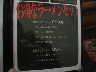 「お得なラーメンセット」250円です。