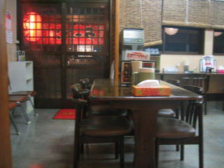 お店は玄関入ると4人掛けテーブル席が4つくらい、窓側にカウンター席、奥に小上がり席です。