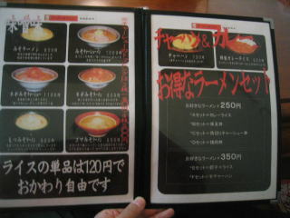 「ライスの単品は120円でおかわり自由です。」