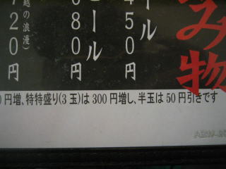 「特特盛り(3玉)は300円増、半玉は50円引きです」。