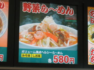 今回は「野菜ら〜めん」のみそ味580円にしました。