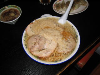 チャーシュー麺大盛り大油、餃子を頼みました。