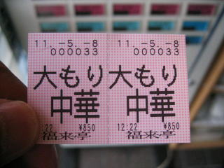 券売機で「特もり中華」1000円と迷いましたが、「大もり中華」850円にします。