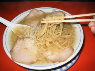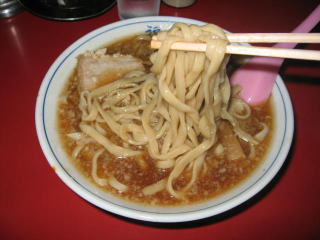 薄茶色の極太麺に煮干の効いた出汁が良く絡みます。