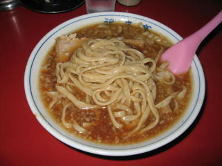 うどんのような極太麺に背脂が少々、今回は背脂は特にリクエストはしていません。