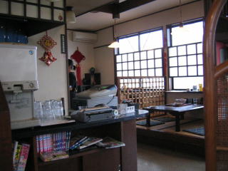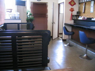 店内はL字型、カウンター席のすだれのかかった奥が厨房の様です。