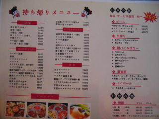 「持ち帰りメニュー」です。