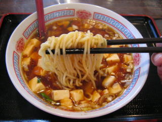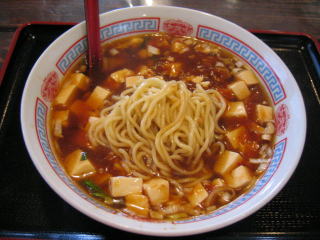 醤油ラーメンに麻婆豆腐をかけたような「麻婆ラーメン」です。